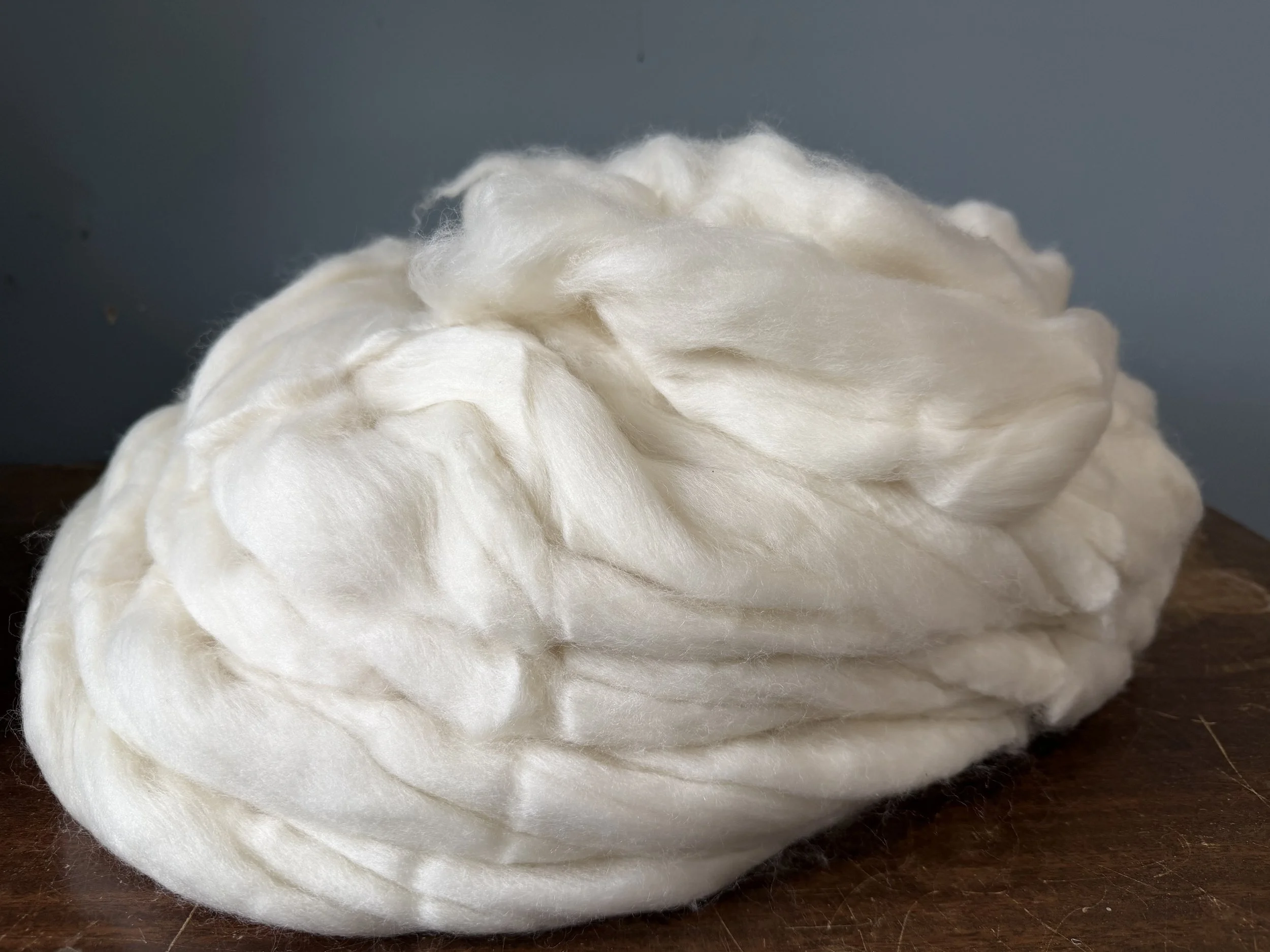 For now, please check out our Etsy store for undyed wool yarn and wool roving blends.