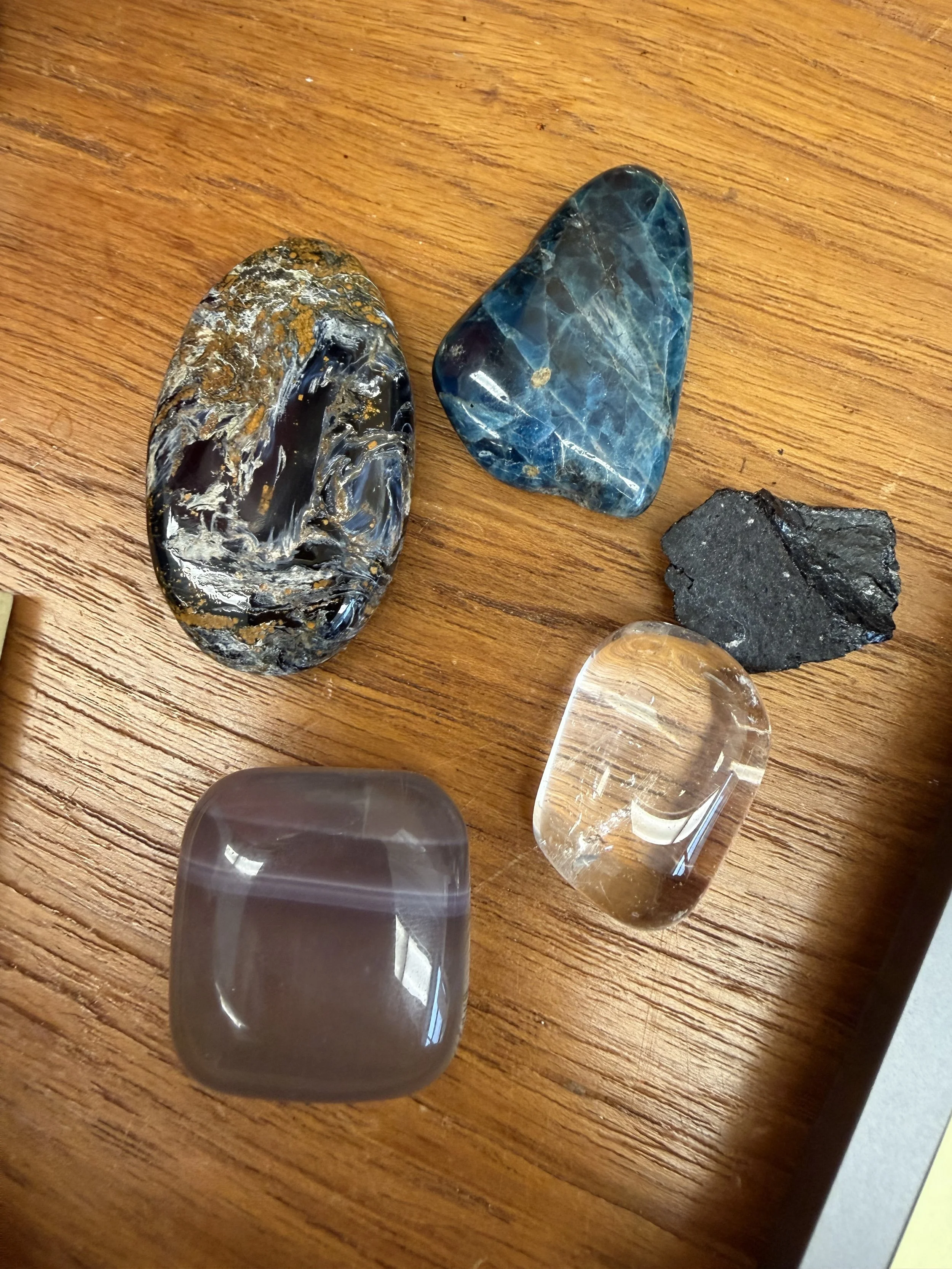 A collection of crystals I gathered from my stash to support my intention of — grounding while harmonizing smoothly